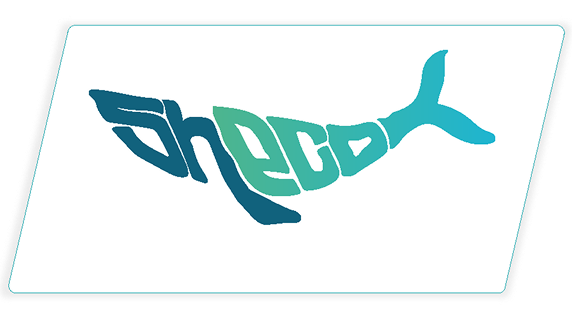 쉐코의 로고는 식물성 플랑크톤의 증식을 돕고, 막대한 양의 탄소를 바다에 저장하는 등 지구의 생태계에 막대한 서비스를 기여하는 고래의 모습을 통해, 해양환경에 큰 파장을 일으킨다는 쉐코의 포부를 담았습니다.
